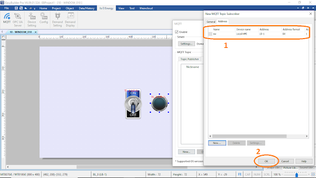 Gambar 1.6 Klik OK, tempatkan objek Toggle Switch pada layar HMI